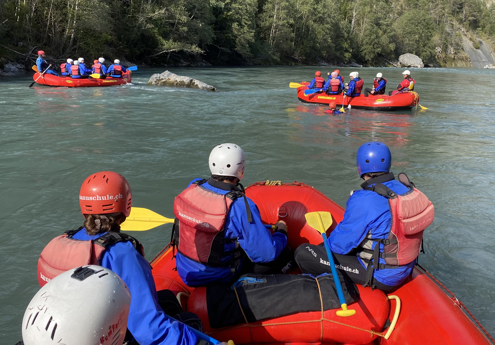 Am ersten Tag genossen wir die River-Rafting-Fahrt auf dem Rhein von Ilanz nach Versam. Am zweiten Tag marschierten wir von Safien Platz auf den Glaspass und verköstigten uns danach im Gasthaus Beverin.
